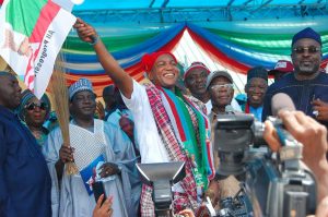 Dignitaries who attended the rally include: Deputy President of the Senate of the Federal Republic of Nigeria, Senator Ovie Omo-Agege; National Chairman of APC, Comrade Adams Oshiomhole; Governors Abubakar Bagudu (Kebbi); Abdullahi Ganduje (Kano) and Simon Lalong (Plateau).