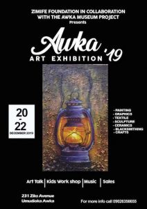 The ancient town of Awka, capital city of Anambra State, comes into international as the Zimife Harris-Eze Foundation in collaboration with The Awka Museum Project celebrates its maiden Art Exhibition, “Awka Art Exhibition 2019” coming up between Friday, December 20 and Sunday, December 22 2019 at 231 Zik Avenue in Umudioka Awka.