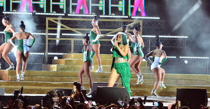 The rapper, an ex-stripper who was coming to Nigeria for the first time, visited a popular Lagos strip club and sprayed some Naira notes on some of the naked strippers at the joint before she held her sold out performance at the Livespot X Festival which held at the Eko Atlantic City, Lagos.