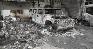 Then there’s the luxury car collection. The attackers set fire to more than a dozen cars, including a Lamborghini, Hummer and a Cadillac. All that’s left is burned out shells, a few tyre rims and mounds of ashes where a stray cat has made a home.